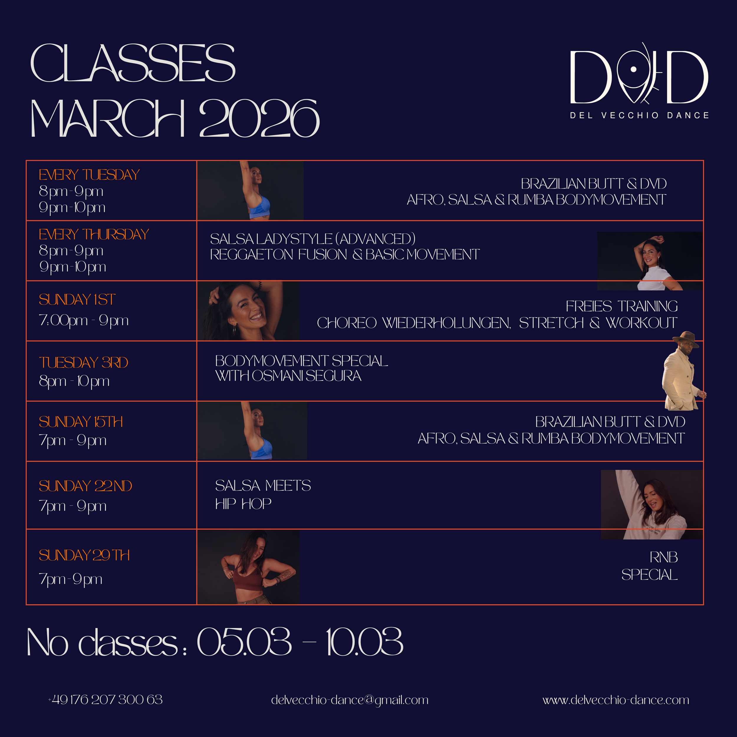 Mein neuer Stundenplan ist da! Freu dich auf regelmäßige Tanzkurse wie Brazilian Butt, Salsa Ladystyle und Reggaeton sowie auf unsere monatlichen Specials, die für Abwechslung und Inspiration sorgen. Schau vorbei und finde den passenden Kurs für dich!